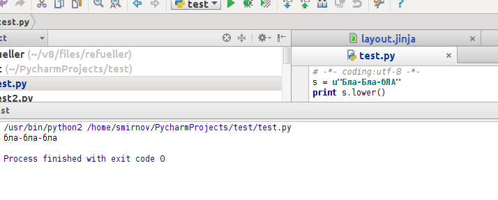 >>> s='Бла-блА' >>> su=u'Бла-блА' >>> >>> print s.lower() Бла-блА >>> print su.lower() бла-бла